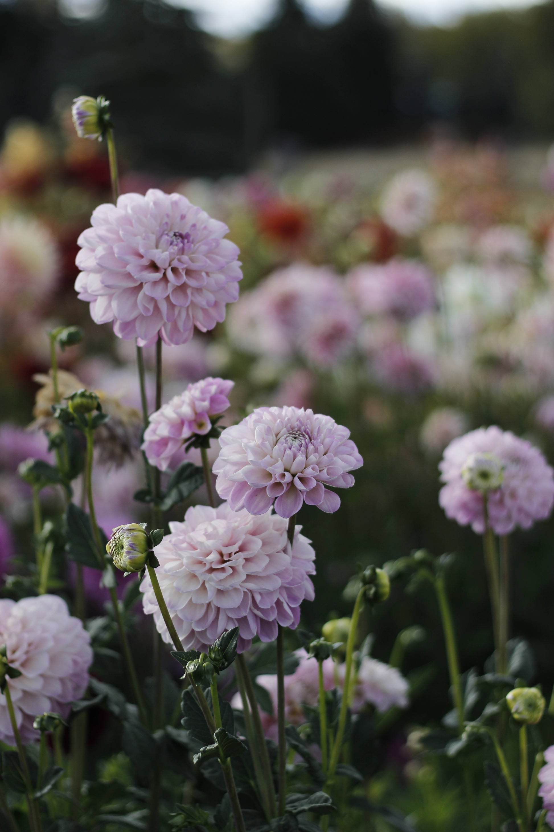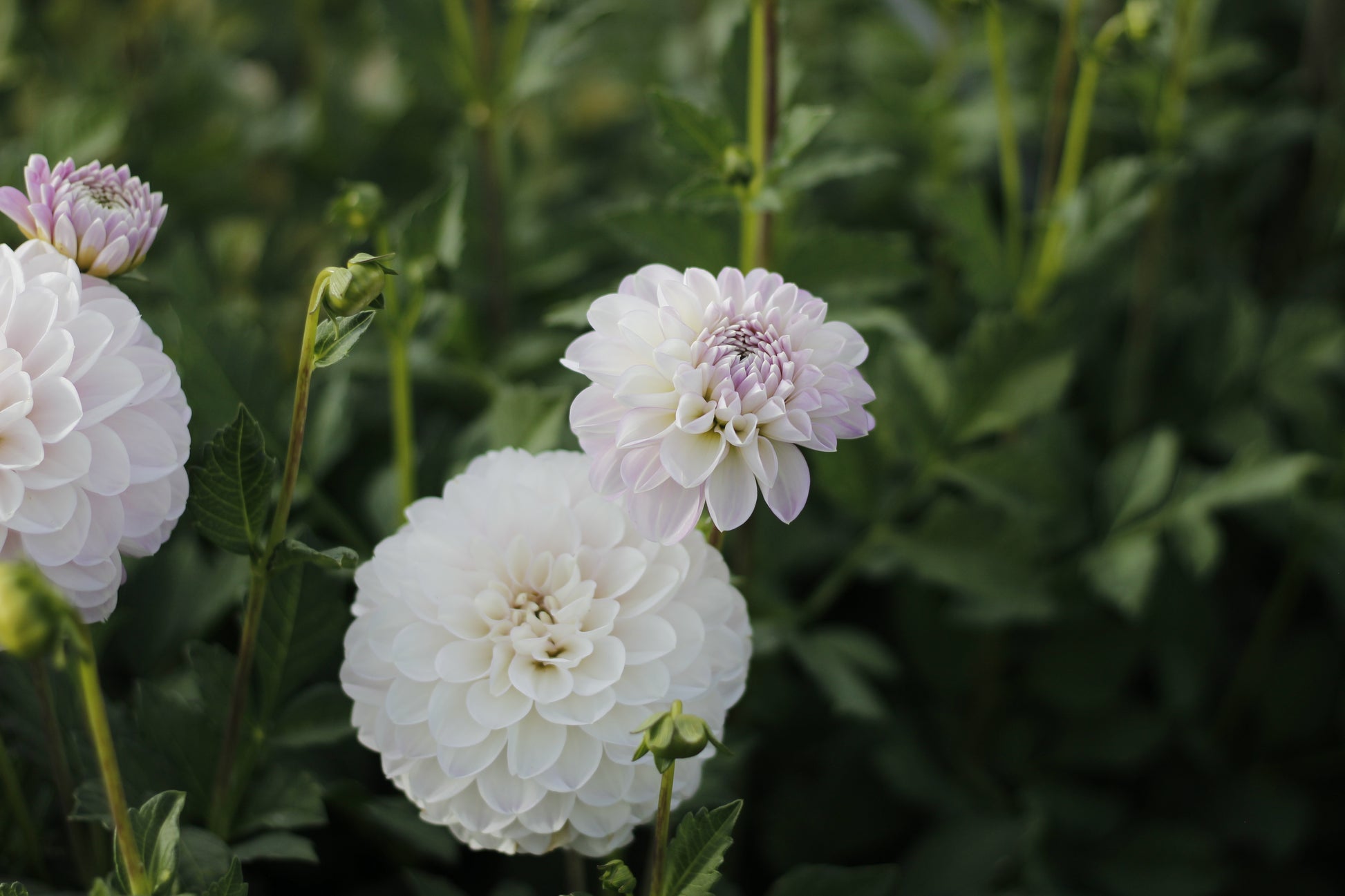 Marionberry Milkshake is a soft lavender-pink ball dahlia with a gentle, milky undertone that gives the blooms a muted, creamy look. The color reads light and airy, with subtle variation toward the center, and the tight, uniform form makes it very easy to work with. It’s a productive variety with strong stems and a steady supply of blooms, making it a reliable choice for bouquets and wedding work.