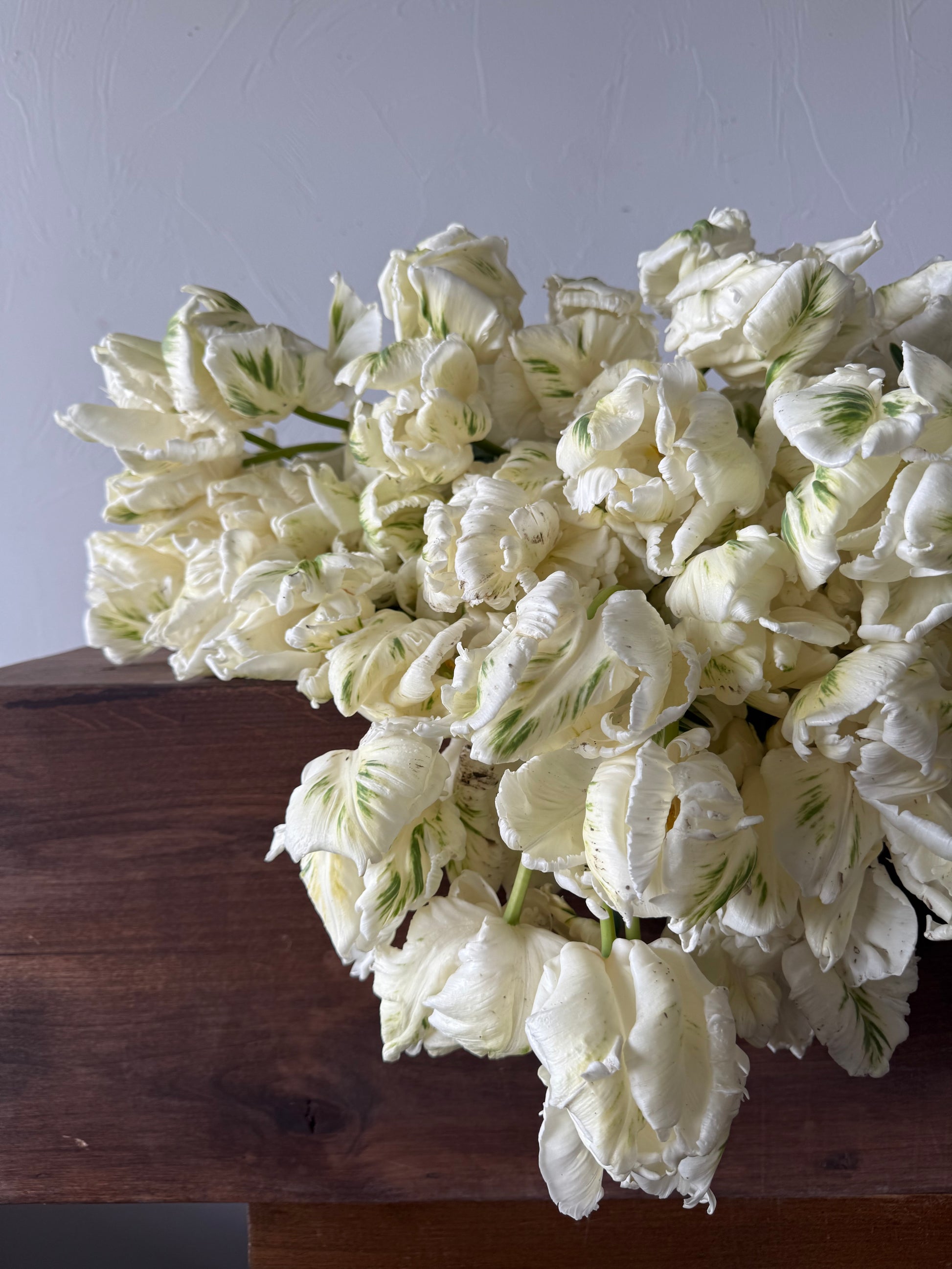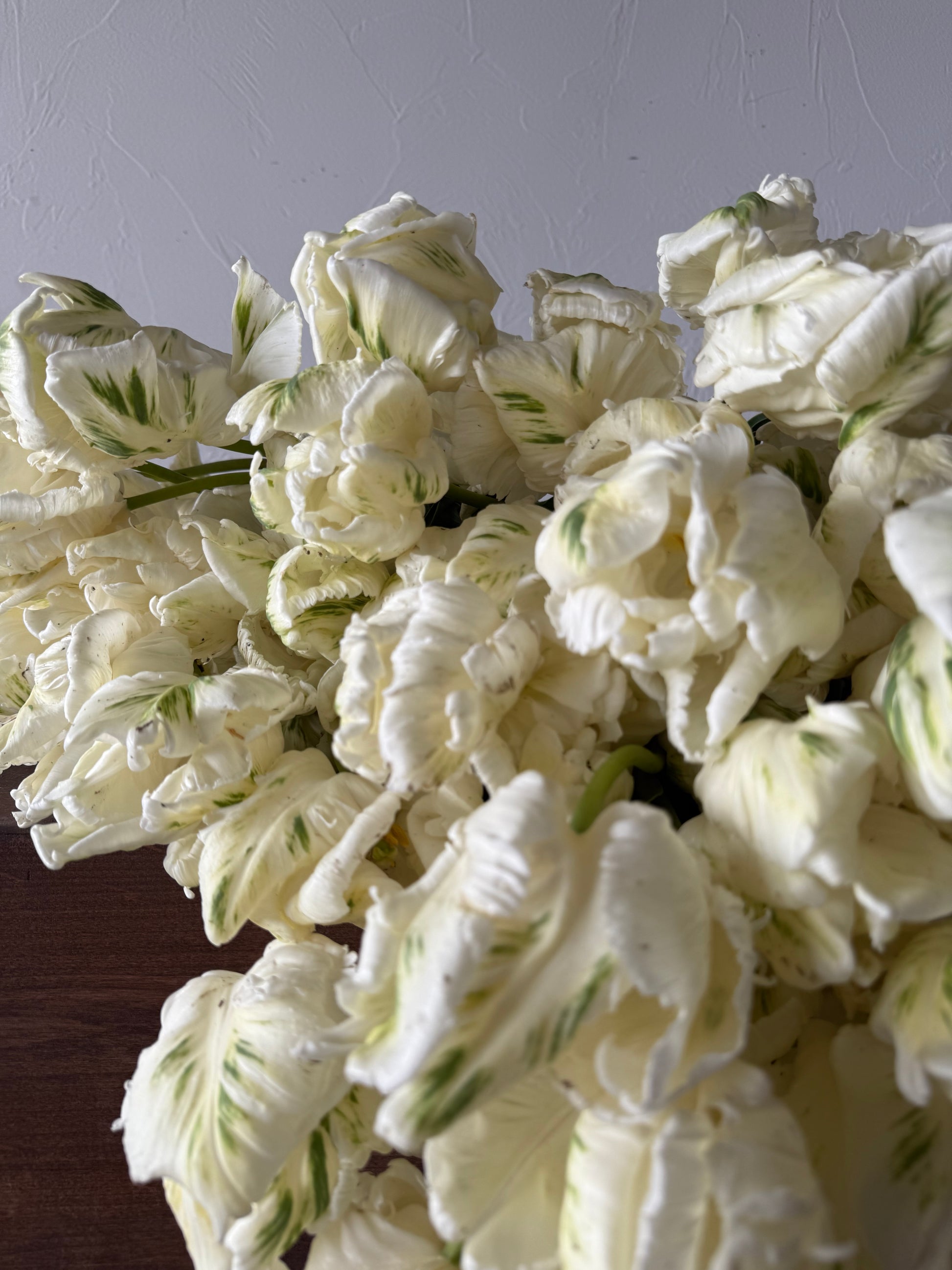 Special Remarks: Super Parrot is a timeless favorite for its bold form and crisp coloration. The strong stems support its large, dramatic blooms beautifully, making it a standout in both garden borders and event arrangements. Pair with whites, soft greens, or pale pinks for a serene, sculptural composition that feels both classic and contemporary.