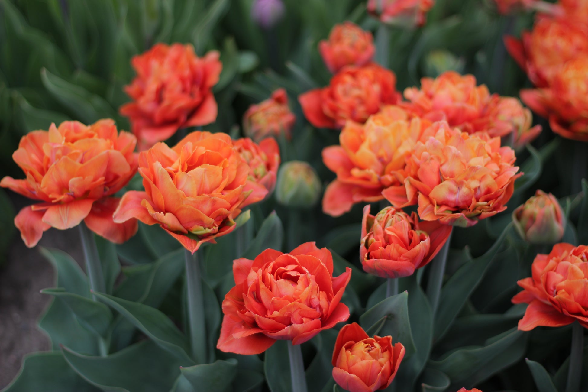Vivid and theatrical, Valdivia is a double early tulip whose blooms explode in multi-layered petals of orange, salmon, gold, and fire-kissed red. The color shifts from apricot to deeper tones as the blossoms mature, offering dynamic warmth in both garden beds and floral arrangements.